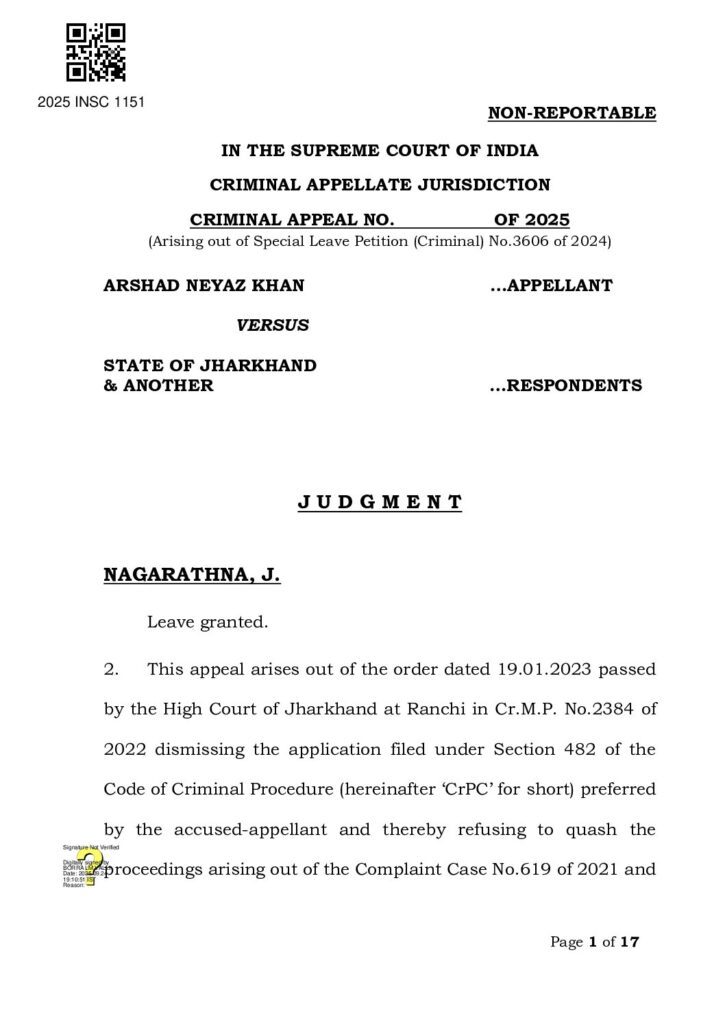 കേസിൻ്റെ പേര്: അർഷാദ് നെയാസ് ഖാൻ vs ജാർഖണ്ഡ് സംസ്ഥാനം & മറ്റൊന്ന്
